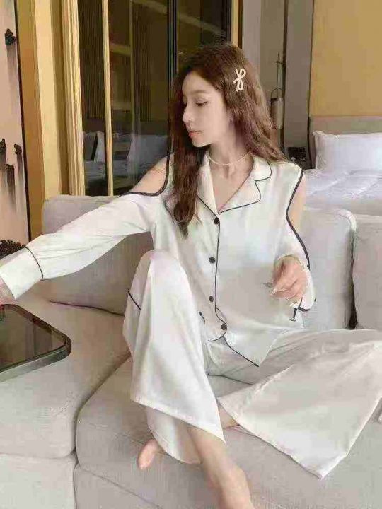 ① 网红爆款冰丝性感长袖长裤睡衣两件套装!整款两色,独立包装,码数M-2XL...