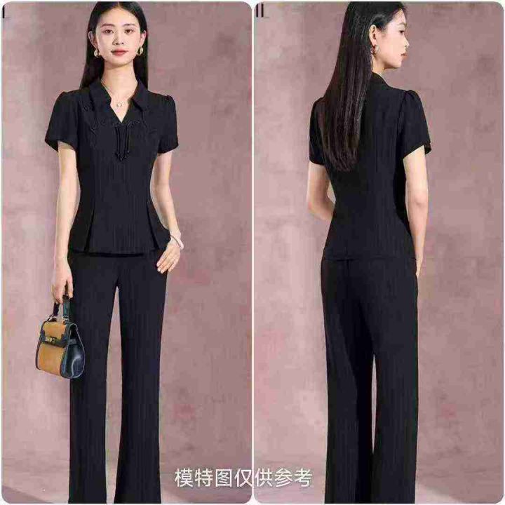 7.8清电商仓回收519套气质国风改良新中式条纹翻领短袖长裤套装,码数2-4-6...