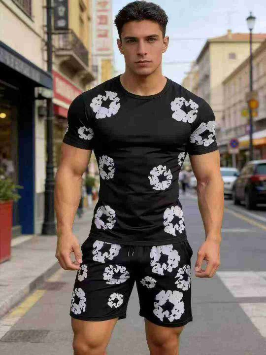 夏季新款时尚趋势潮流清凉短袖短裤T恤套装欧美款,独立包装,统一网眼速干...