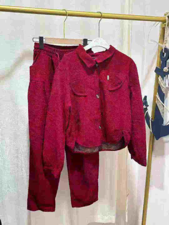 翻领灯芯绒保暖套装女2025冬季加绒加厚宽松显瘦卫衣直筒裤两件套,数量230...