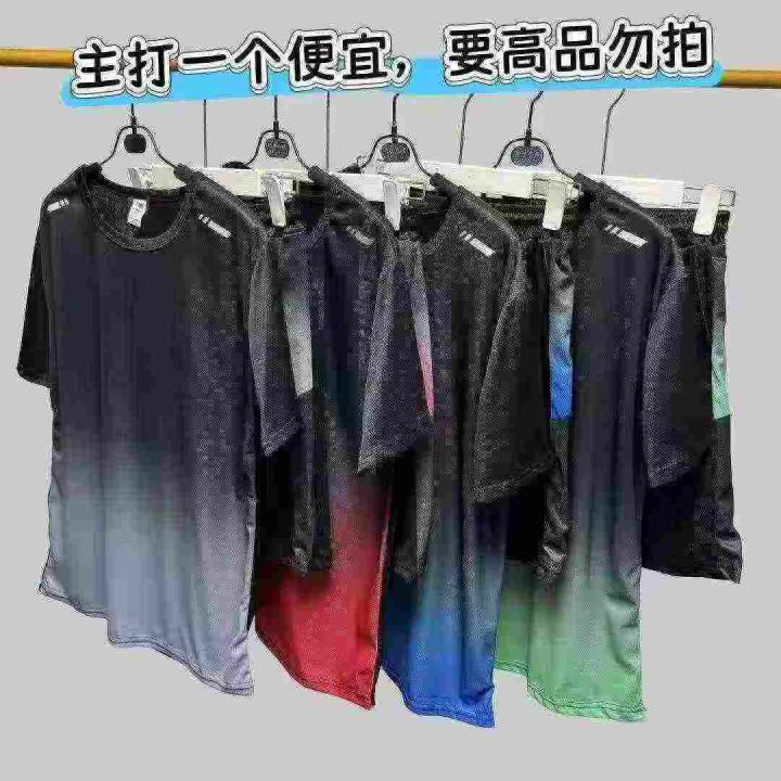 男士运动服套装夏季速干短袖短裤薄款健身T恤跑步篮球训练两件套,图片款为...