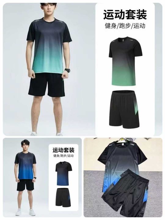 男士运动服套装夏季速干短袖短裤薄款健身T恤跑步篮球训练两件套,图片款为...