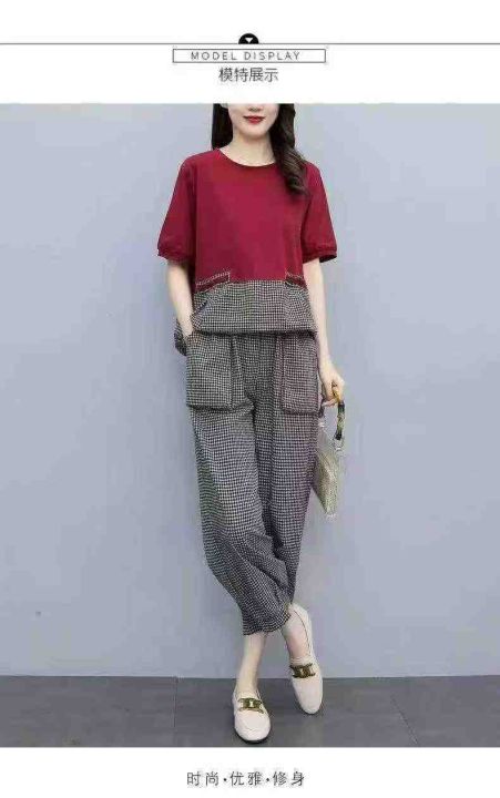 14清3000套,减龄洋气时尚套装2025夏装新款大码女装显瘦短袖休闲哈伦裤两件...