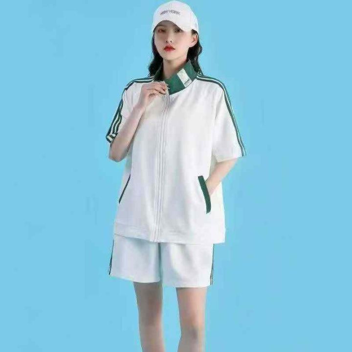 清14.8分货➕1新款短袖阔腿裤显瘦两件套女2025夏季时尚拉链拼接撞色休闲套...