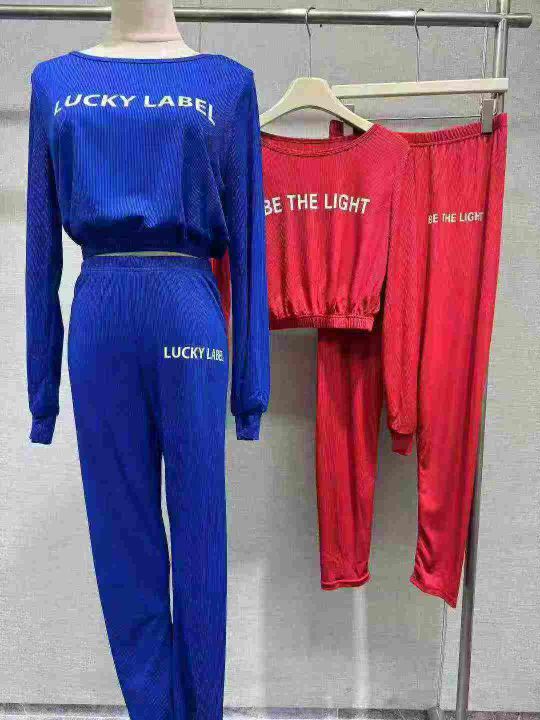 16清600套,秋季修身显瘦简单大气罗纹运动休闲字母印花套装,码数s-2xl。...