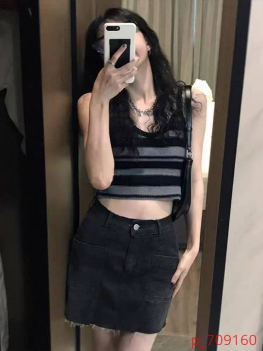 盐系条纹复古炸街辣妹套装开衫外套+背心吊带两件套,单款单色,独立包装,...