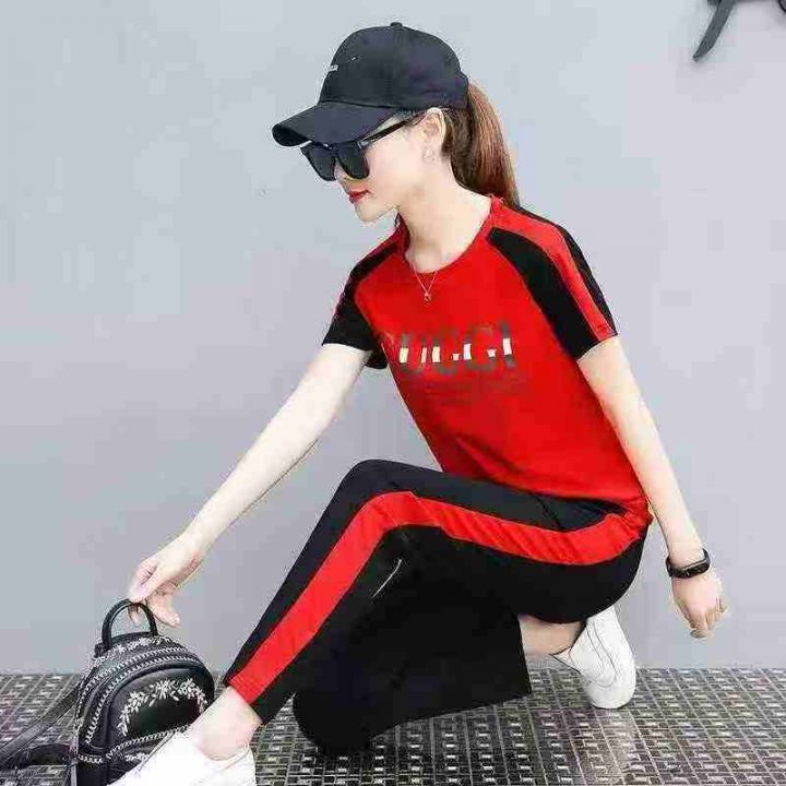 短袖长裤运动套装女夏时尚纯棉宽松跑步服休闲两件套,数量110套,码数ml3xl...