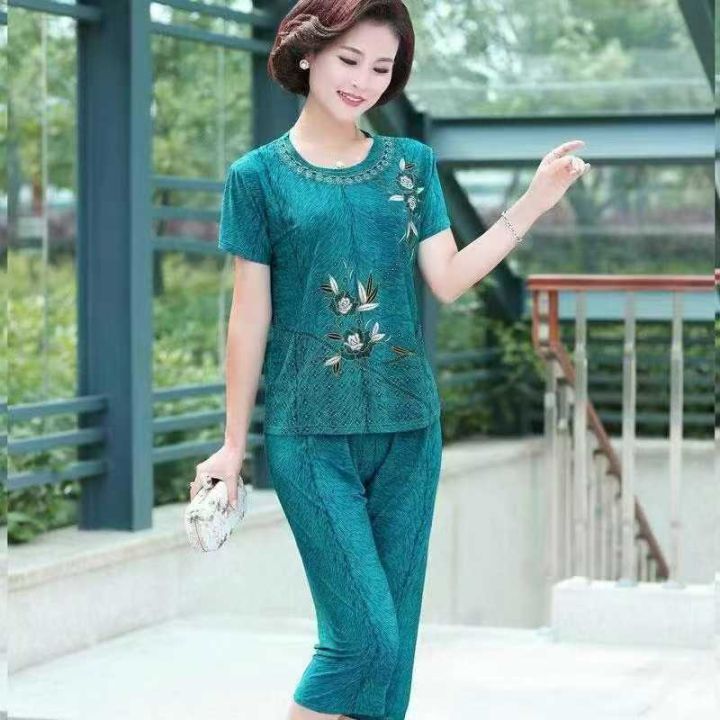 中老年冰丝烫金套装[玫瑰][玫瑰][玫瑰]XL-4XL批发跑量14.8...