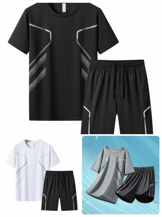 男士运动服套装夏季速干短袖短裤薄款健身T恤跑步篮球训练两件套,图片款为...