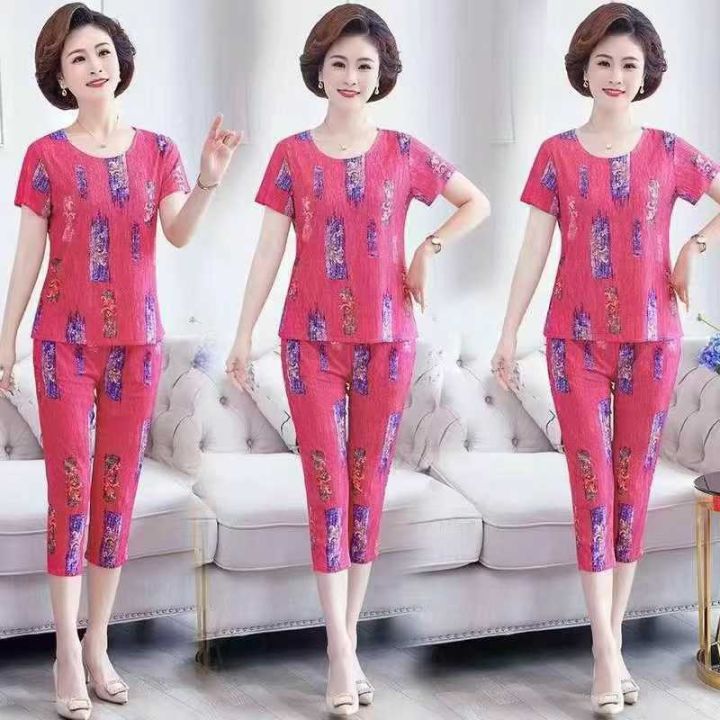 800套全清14.5元,100套起15元,妈妈套装美人条七分裤短袖套装中老年夏季套...