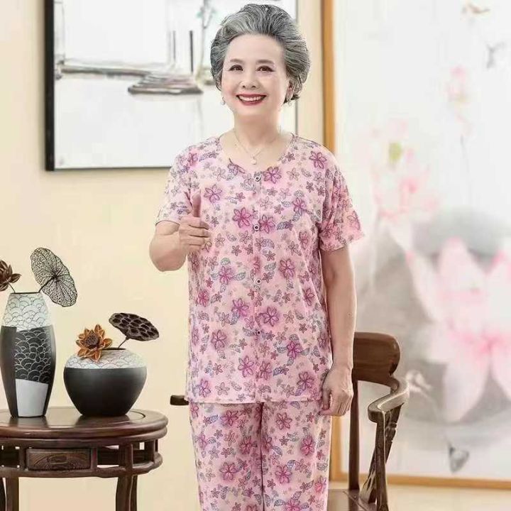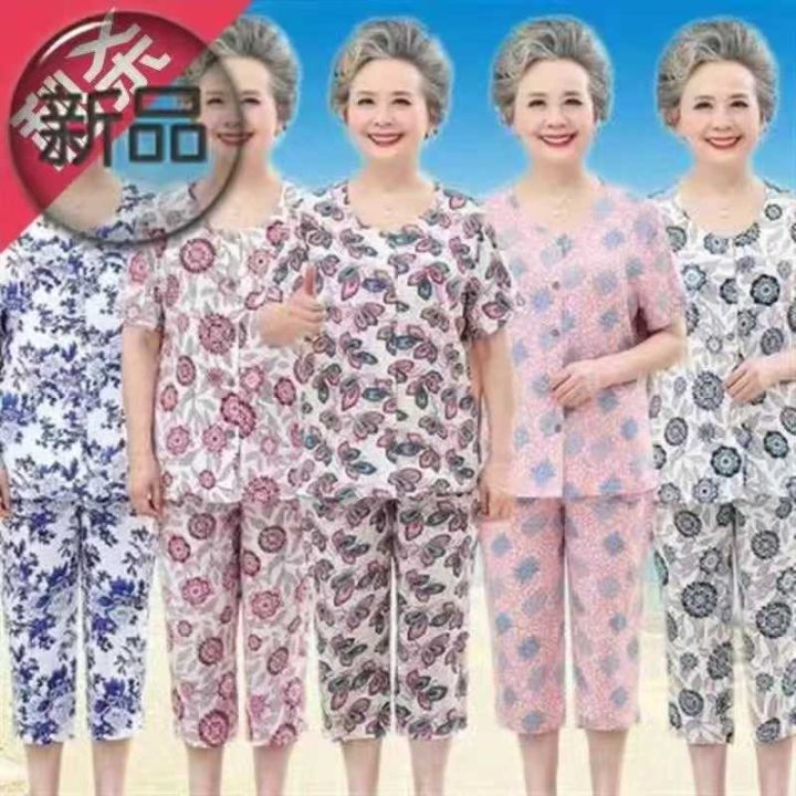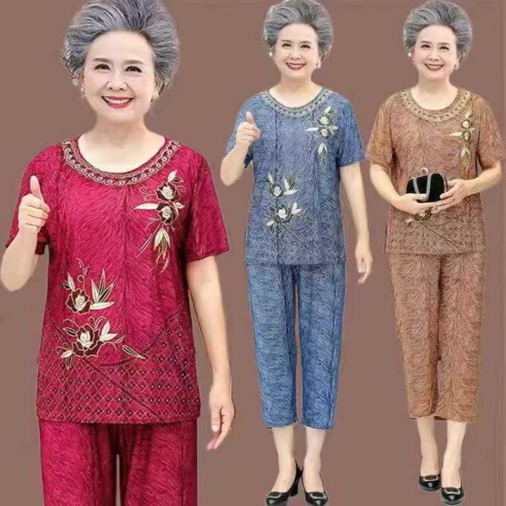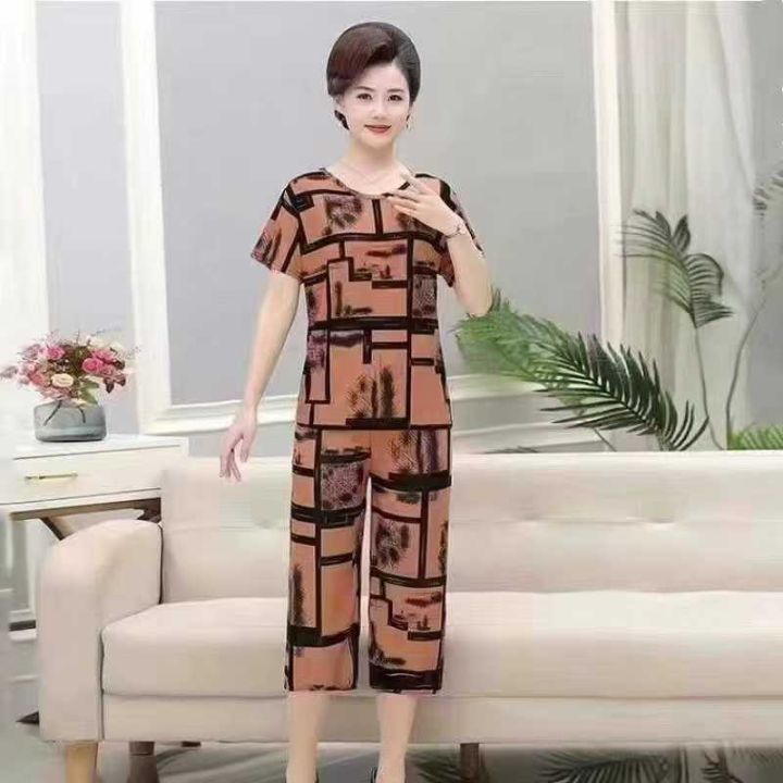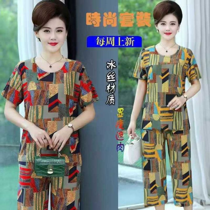 14.9元打包,100件起,中年妈妈夏装短袖冰丝衫洋气套装中老年人女装夏季上...