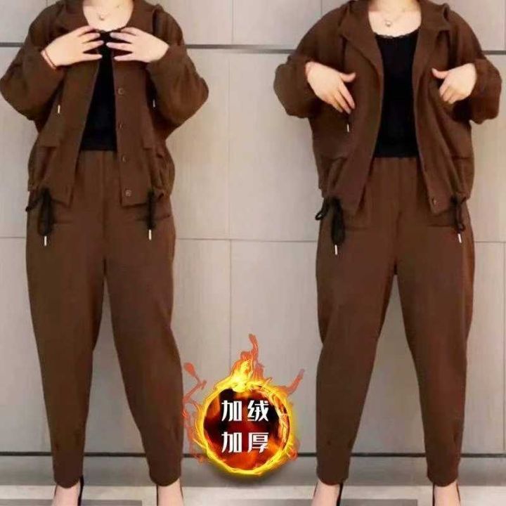 大码女装休闲套装女2025秋冬季新款加绒加厚宽松哈伦裤两件套,2款2色就口袋...