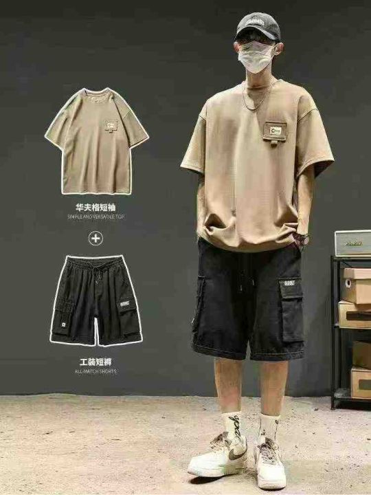全清15.8元/套93套高品质夏季男装美式潮牌工装短裤套装,上衣华夫格面料...