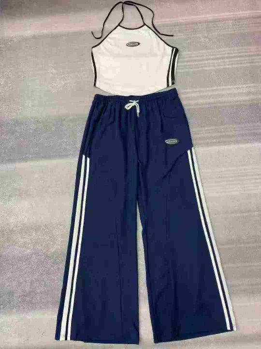 秋季新款撞色条纹软糯吊带背心+针织弹力修身上衣俩件套套装,独立包装,均...