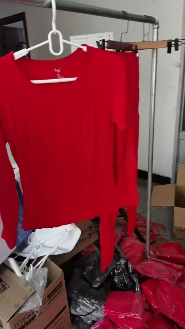 捡漏款,秋冬新款品牌原单女装红色设计款长袖上衣+红色高腰宽松阔腿裤新年...