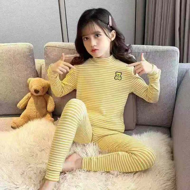 7.9清374套/分货8.5潮童刺绣小熊条纹德绒保暖打底家居套装130-170 独立包装...
