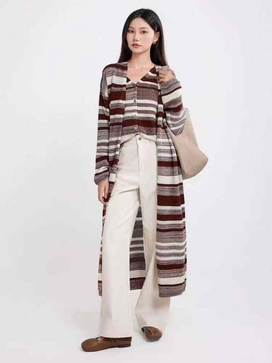 捡漏款,秋冬新款网红赫本风大长款条纹针织毛衣开衫,套装有20套左右,单件...