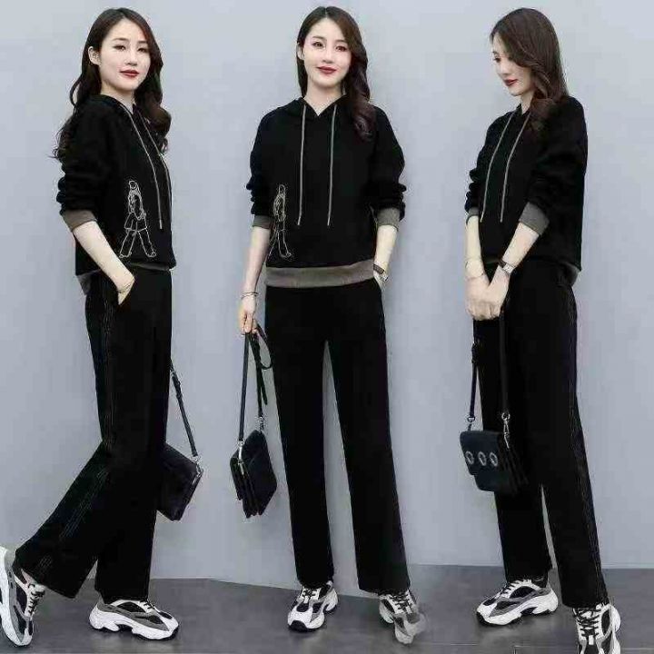 全清价13.8休闲运动服套装女韩版减龄时尚宽松卫衣两件套,独立包装,大货黑...