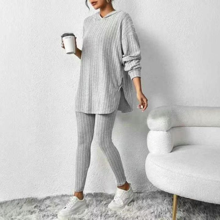 休闲套装欧美宽松连帽长袖休闲长裤螺纹套装,左右开叉时尚版独立包装XS到L...