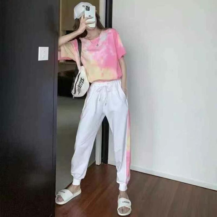 清货价7.9新款外贸女士扎染套装两件套夏季服装休闲两件套短袖T恤,独立包装...