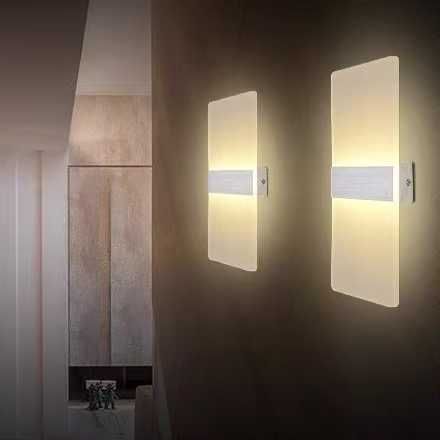 金属拉丝亚克力LED壁灯,一盒2个灯套装,85~265V宽电压全球通用,包装盒尺...
