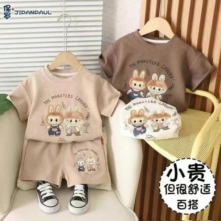 童装AB面印花纯棉短袖套装休闲卡通两件套,数量1030套,码数90-130,拉链独...
