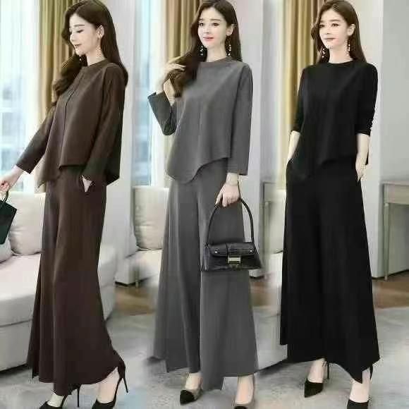 时尚阔腿裤套装女2025春秋季新款洋气减龄大码气质显瘦休闲两件套,独立包装...