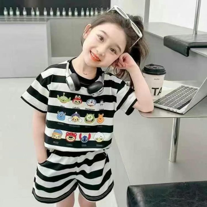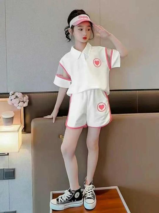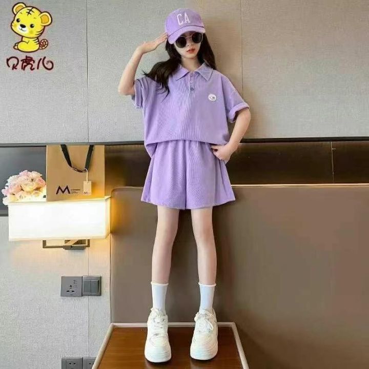女童时尚套装2025夏季新款洋气儿童夏装薄款短袖短裤休闲两件套,总数量90套...