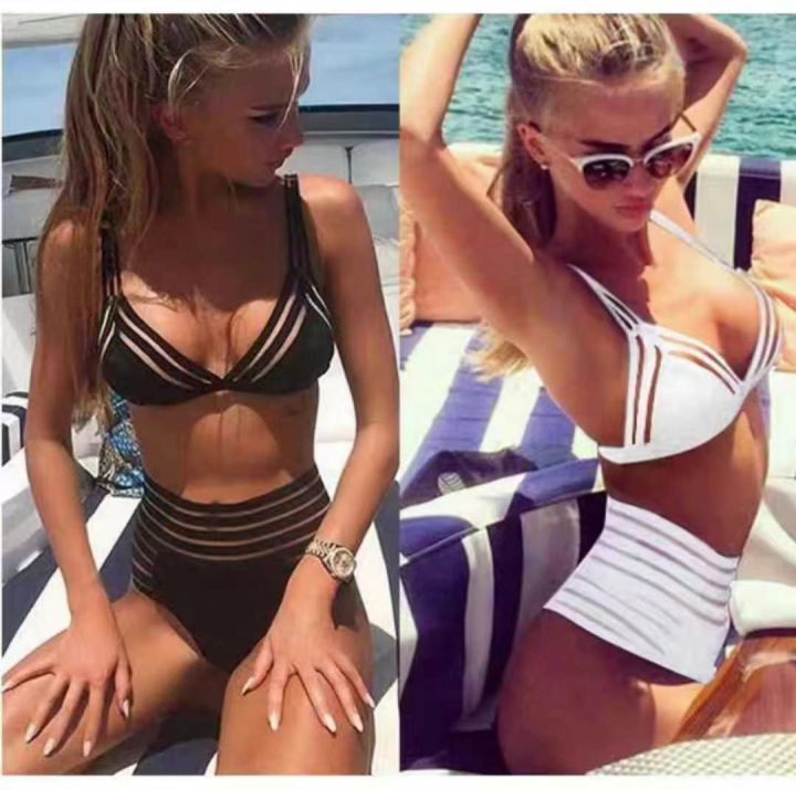 3.88元秒杀[爱心][爱心] 性感条纹空心拼接三点式比基尼泳衣套装,独立包装...