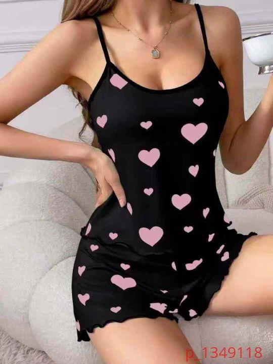 5.9清工厂订单跑单1123套外贸爱心吊带短裤睡衣家居服套装女,码数S-5XL。面...