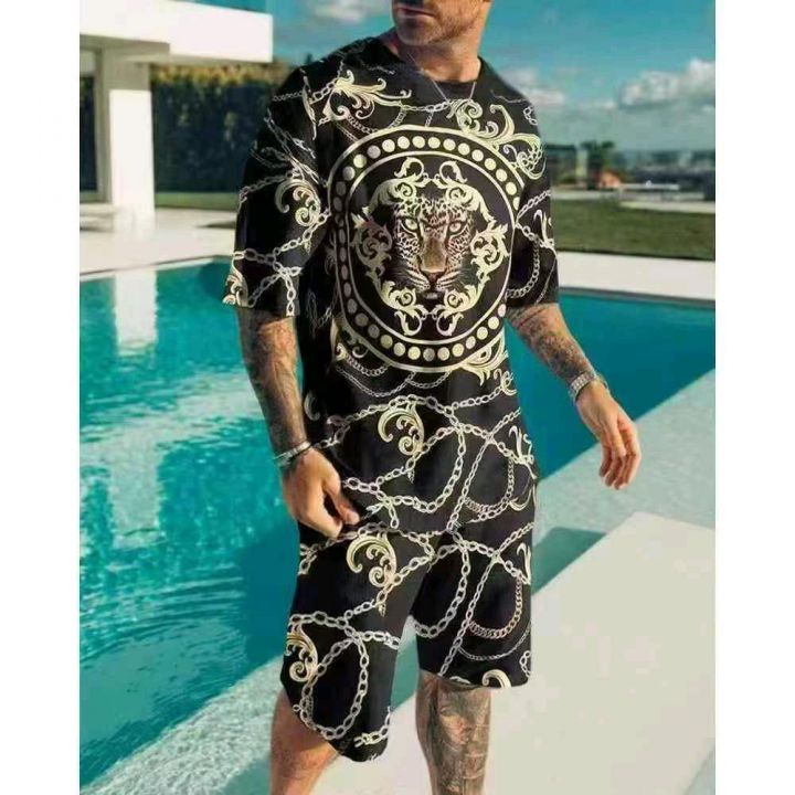 9800件,全清8.8,分货➕1,2025夏季爆款跨境男士T恤圆领套装,休闲时尚男...