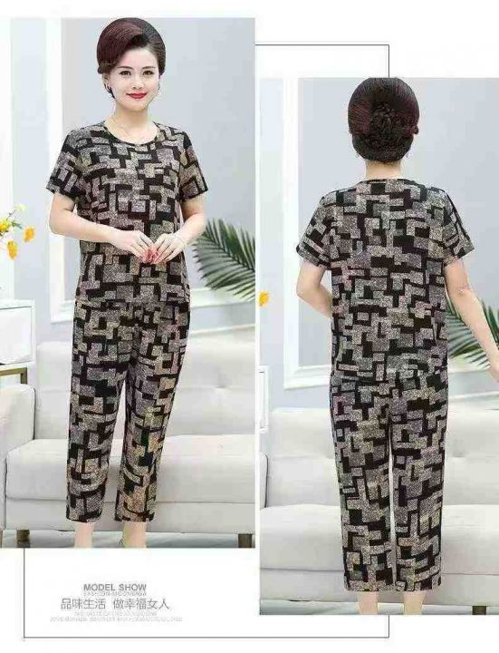 全清价5.9元妈妈夏装套装冰丝亲肤凉快舒服可外穿中老年人女款上衣五分裤两...