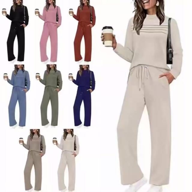 8.9清欧美跨境时尚女装长袖长裤两件套套装,整款多色,数量200套左右,码数...