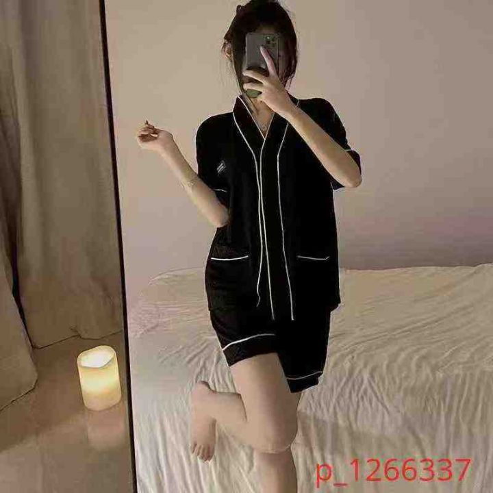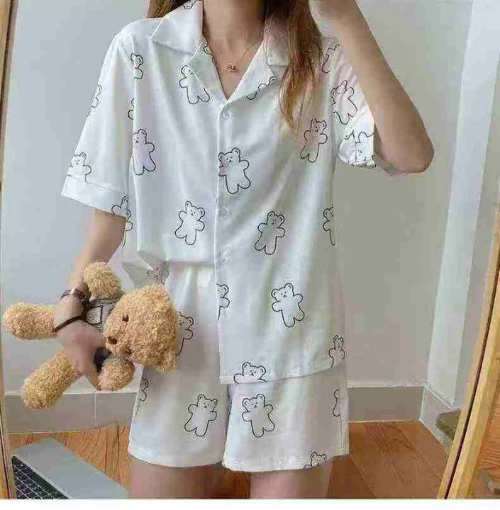 男女款睡衣女夏天短袖短裤开衫睡衣ins风大码高颜值宽松版外穿套装,两个整...