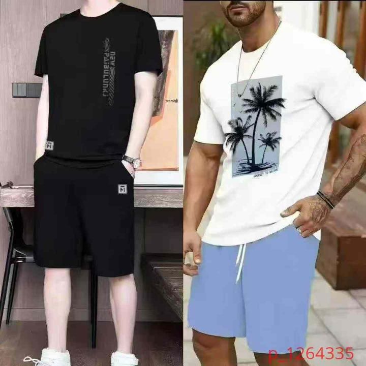 全清价10.8华夫透气舒适面料潮牌男士短袖短裤休闲运动宽松两件套套装,独立...