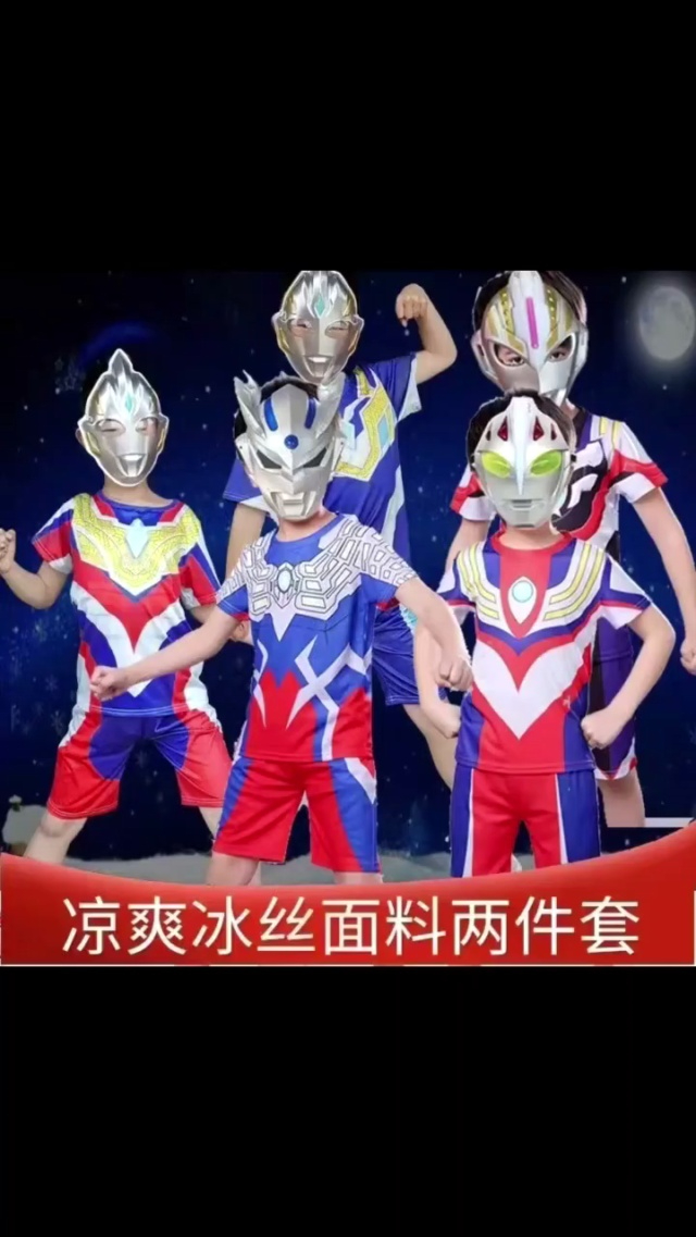 [發]童装冰丝套装11000套 奥特曼套装 独立包装有吊牌 后颈包边包条整...