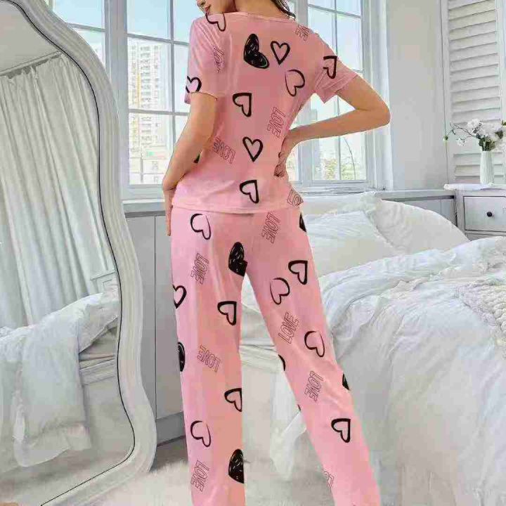 8.9清电商仓回收1088件外贸亚马逊速卖通爱心刺绣女士睡衣套装,码数S-2XL。...
