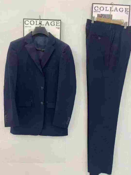 藏青色西装套装800套左右,商务修身正装免烫,两边开叉,码数34-50配有衣架...