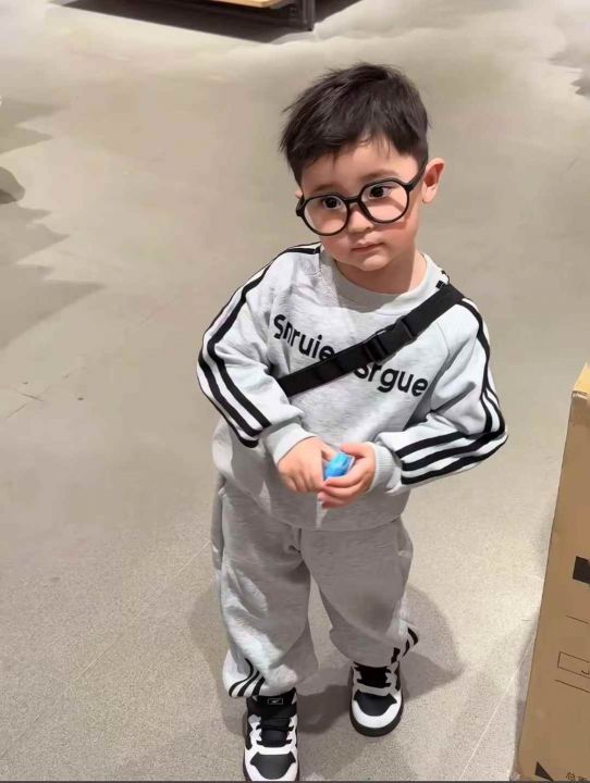 15.99男女童都好穿的灰套装字母印花,设计款出门 3 分钟,省去好多搭配时间...