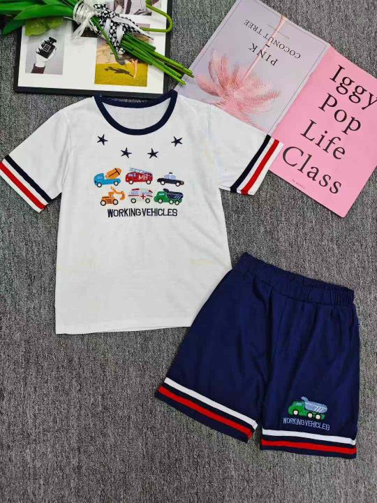 3.5清天猫仓回收800套纯棉卡通儿童短袖刺绣短裤套装,码数80-130。面料柔软...