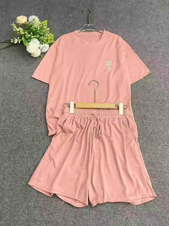 85套粉色系刺绣休闲圆领套装,单款单色,面料柔顺舒适,高弹力,品质好。码...