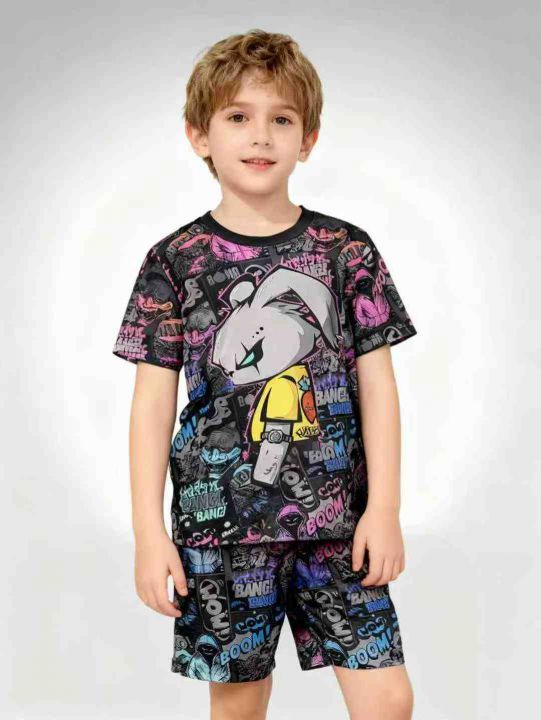 纯棉短袖套装1218套10.8,面料舒适透气,图案印花,裤子抽绳松紧腰,有口袋...