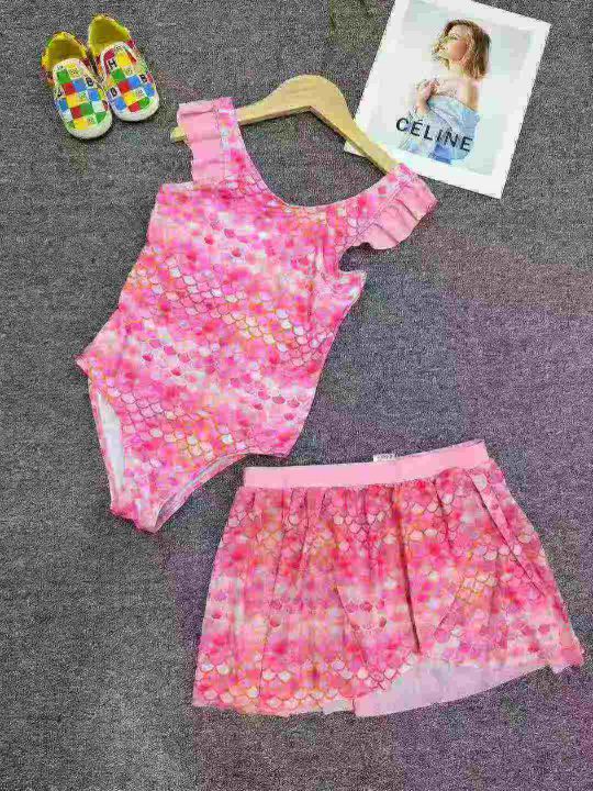 女童连体游泳衣女宝吊带公主风可爱碎花温泉玩水冲浪游泳训练泳装套装,,独...