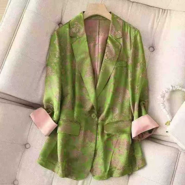 桑蚕丝真丝春夏款薄2025新小西装套装原创设计女士高级感西服外套...