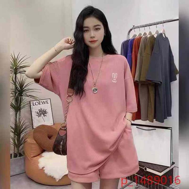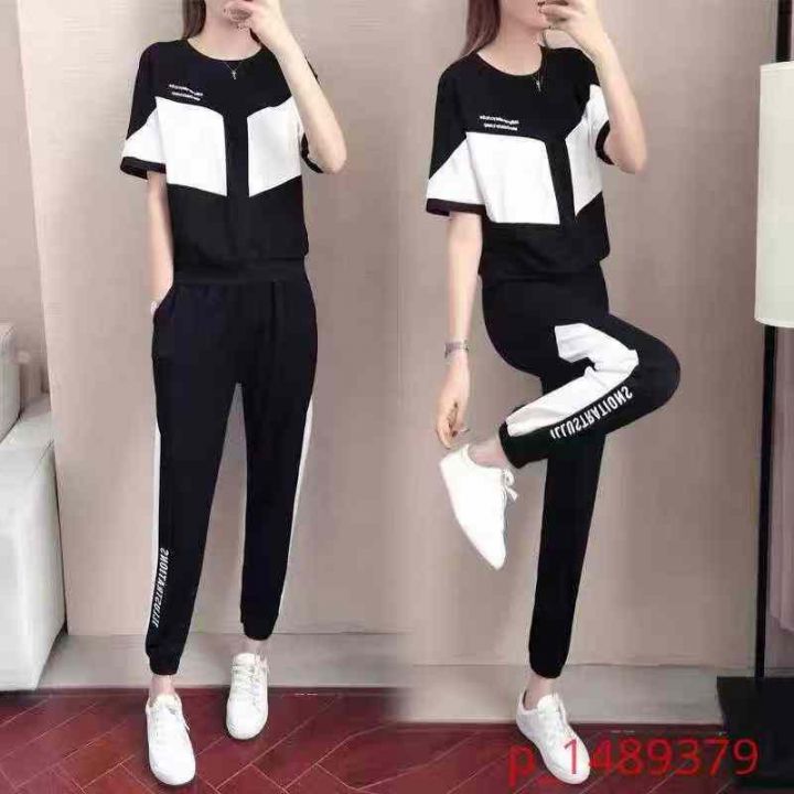 高腰运动套装女夏新款欧货时尚短袖宽松减龄休闲两件套,1到6码,700套左右...