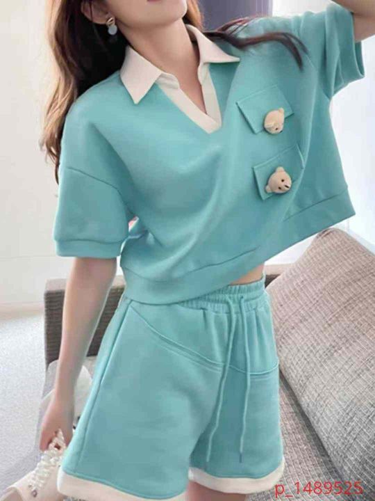 小香风套装炸街减龄高级感休闲运动服POLO领短袖短裤两件套,单款单色,M-2X...