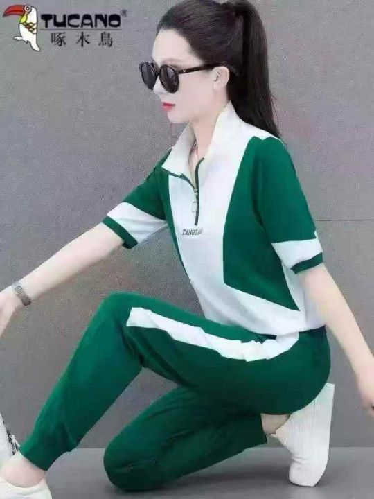 301件,纯棉夏季清新宽松遮肉套装女新款学院风POLO领T恤衫,独立包装,码数...