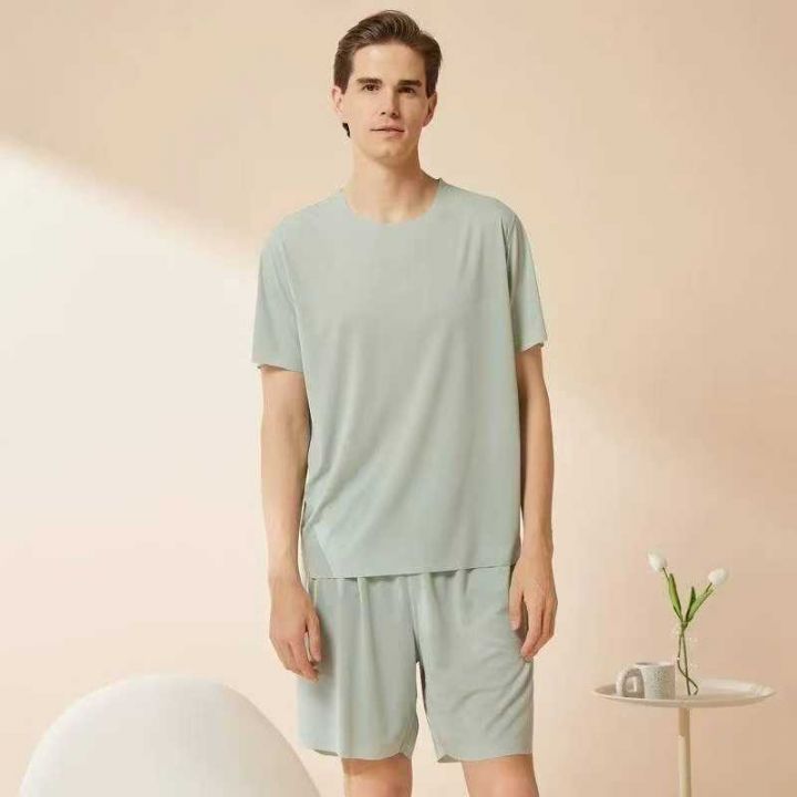 全清7.9,分货+0.5夏季男女同款冰丝家居服,情侣睡衣圆领短袖短裤睡衣套装...