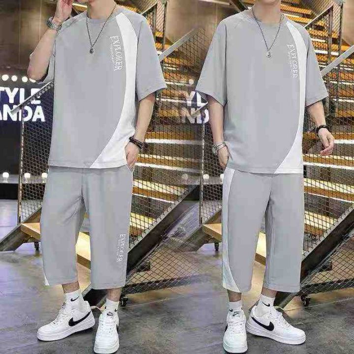 全清价10.9短袖t恤套裤套装男士夏季新款休闲宽松搭配一套帅气潮流运动套裤...