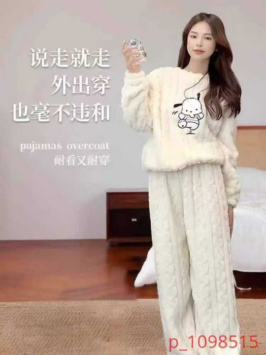 珊瑚绒睡衣套装女哈帕狗提花保暖卡通可爱加绒加厚可外穿家居服,50套多色混...
